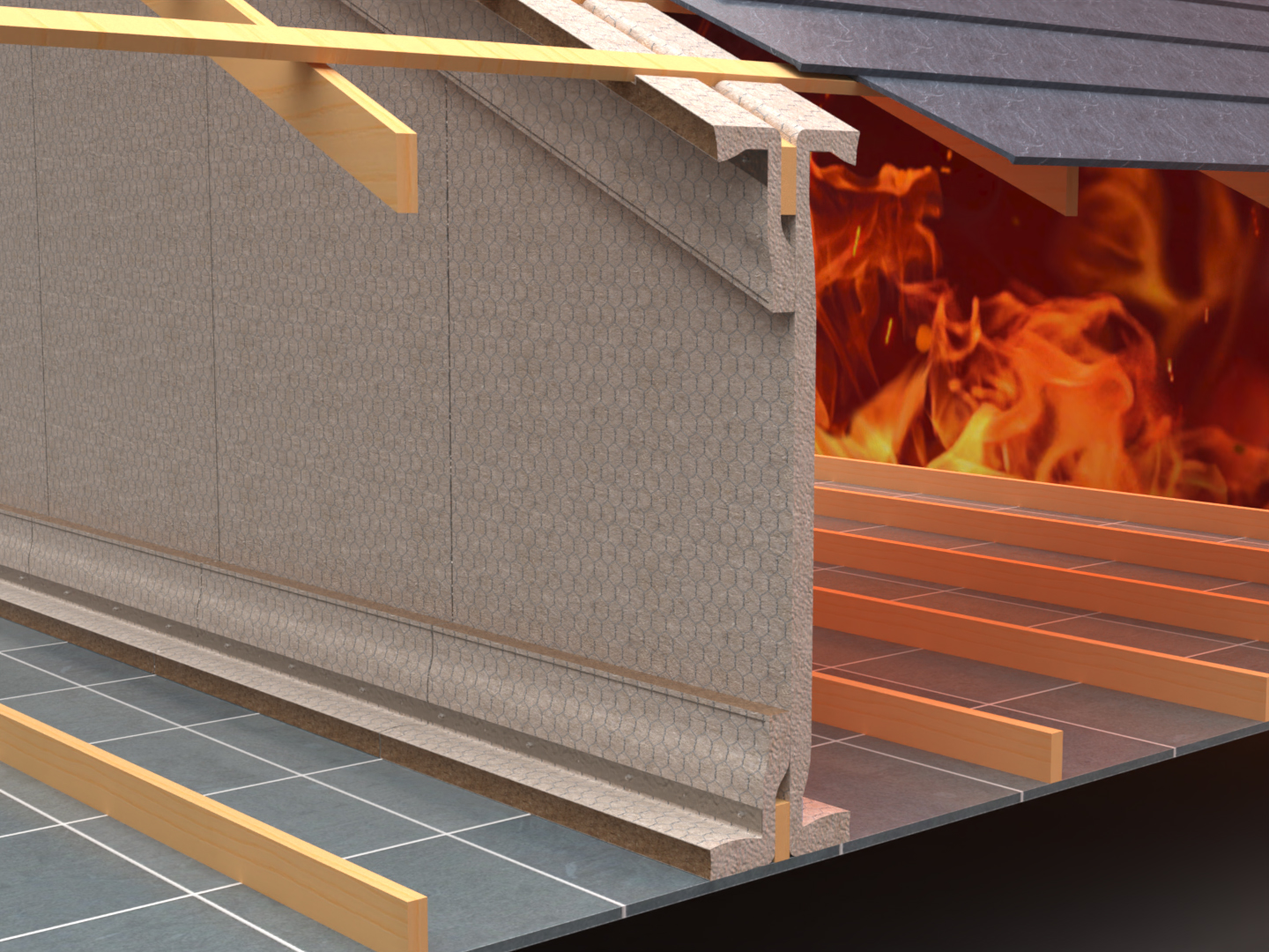 Stone Shield Fire Barrier EN installed in roof cavity (rendered illustration)